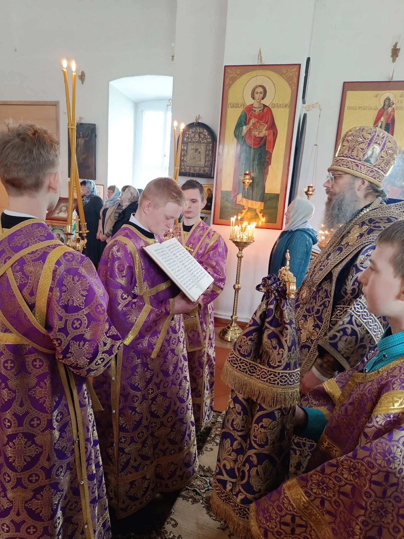 Его Преосвященству сослужили иерей Павел Дрожжин и диакон Владислав Плаксин.
